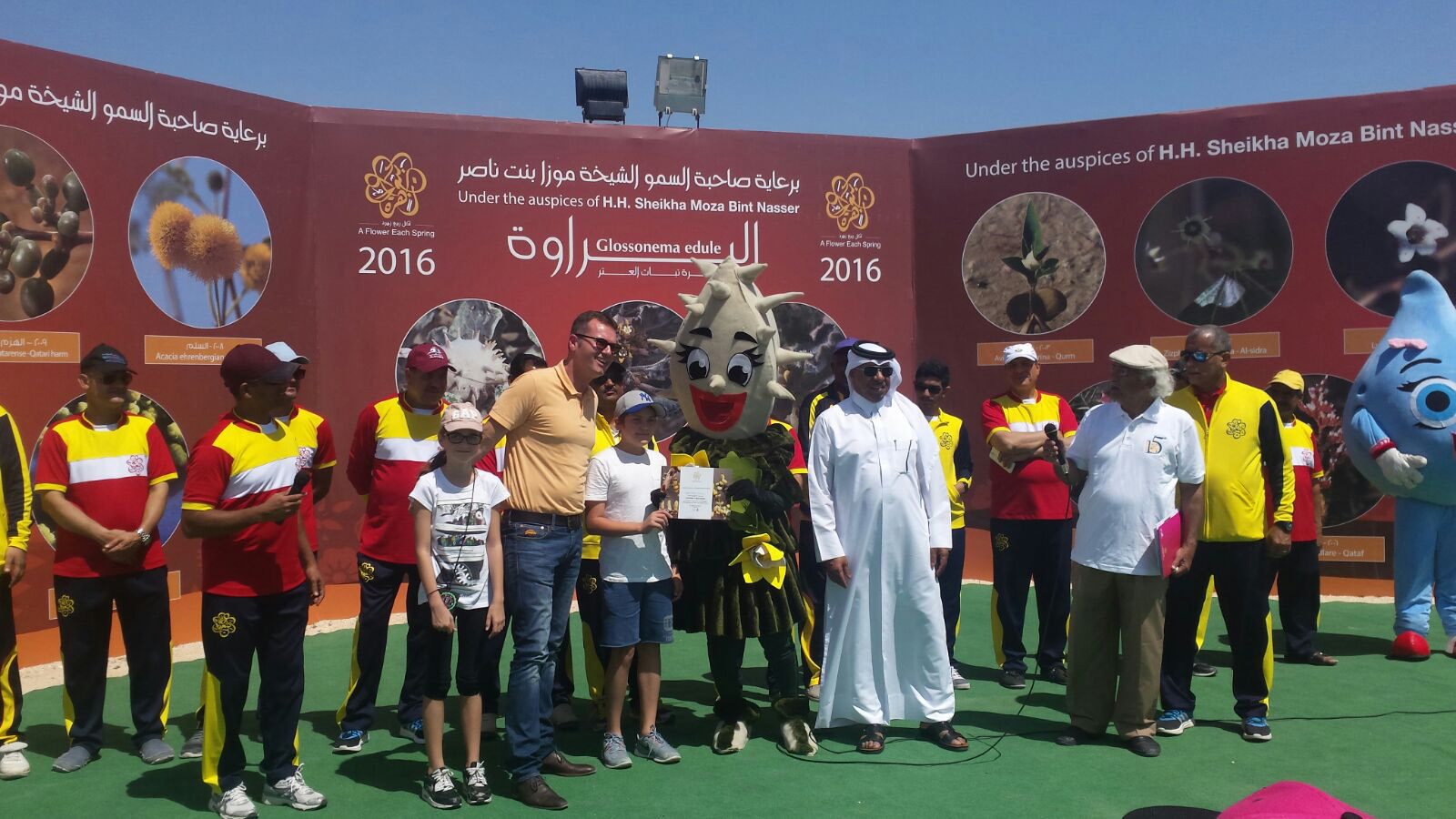 Am Samstag, 16.04.2016 besuchten Schüler, Eltern und Lehrern der Deutschen Internationalen Schule Doha das »A Flower each Spring«-Programm der »Friends of Environment« in der Gegend um Al Khor. Dazu fuhren mehrere Busse morgens in der Frühe nach Al Khor. In dem dortigen Camp wurden die Teilnehmer über die diesjährige Pflanze Glossonema Edule, Vögel der Region, die gesamte Fauna und Flora, Mülltrennung und Müllvermeidung, Verkehrserziehung u.v.a. informiert. Außerdem nahmen die Teilnehmer auch an Workshops teil, deren Ergebnisse sie auch unter den teilnehmenden Schulen austauschten. Für die Deutsche Internationalen Schule Doha erläuterte Charlotte Linhart die Lebensweise der Vögel hier in Katar in einem Kurzvortrag in englischer Sprache. Nach der gemeinsamen Mittagspause fuhren die Teilnehmer zurück zur Schule.