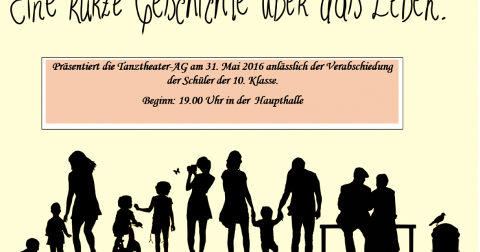 ›Eine kurze Geschichte über das Leben‹ ist der Titel des diesjährigen Stückes der Tanztheater-AG. Die Schülerinnen und Schüler, hier ist Hasan aus der 6. Klasse hervorzuheben, erzählten in kleinen Episoden die Geschichte einer Familie. Eine Geschichte, die in unserer Zeit, an vielen Orten der Welt spielen könnte. 1. Glück 2. Sorgen 3. Gewalt 4. Tod […]