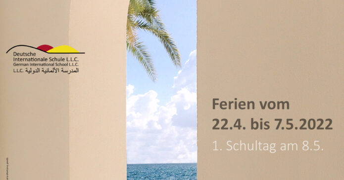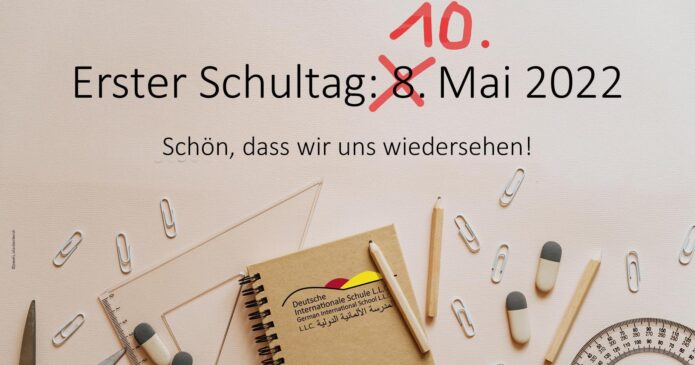 Sehr geehrte Eltern, liebe Schülerinnen und Schüler, das Ministry of Education hat die Schulen darüber informiert, dass die Eid Al Fitr Ferien auf die Zeit vom 01.05.2022 bis zum 09.05.2022 festgelegt wurden. Somit wird der erste Schultag und Kindergartentag am Dienstag, den 10.05.2022 sein. Wir freuen uns auf euch!