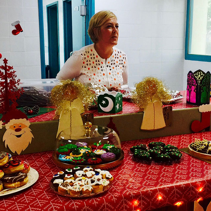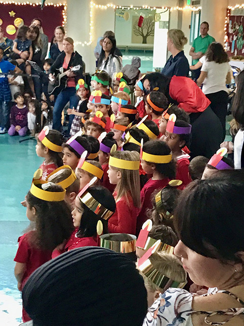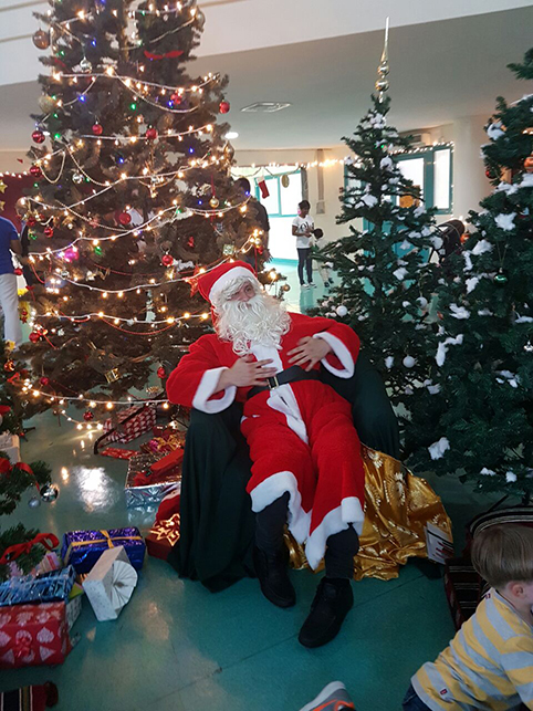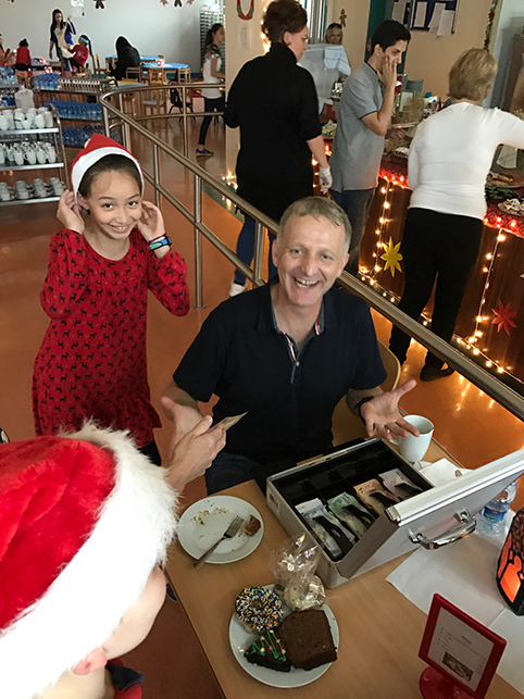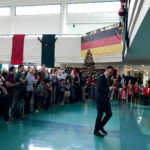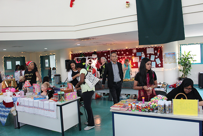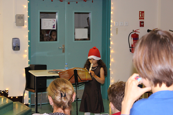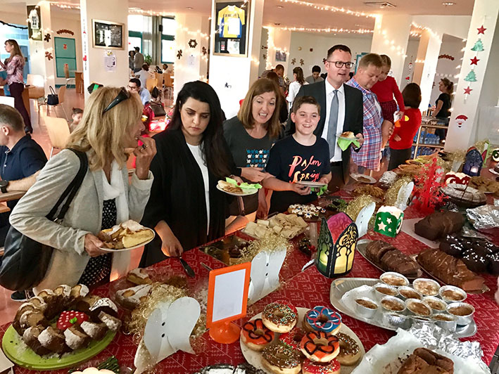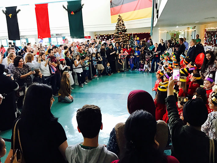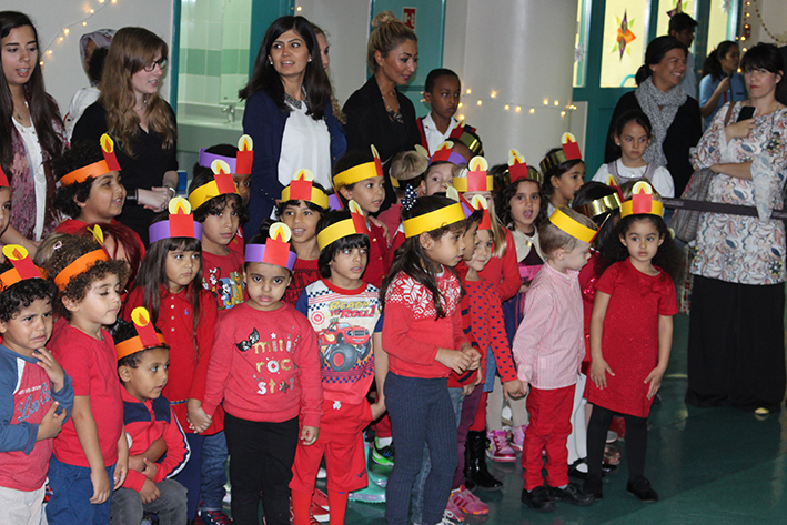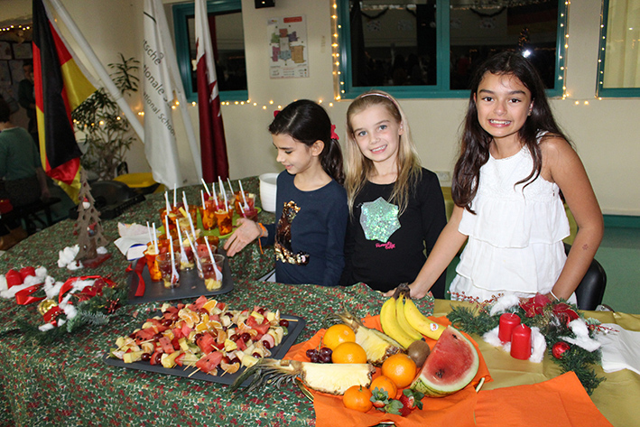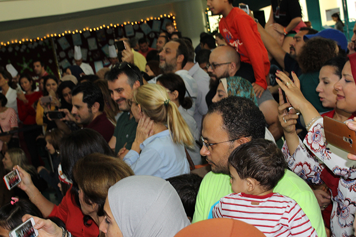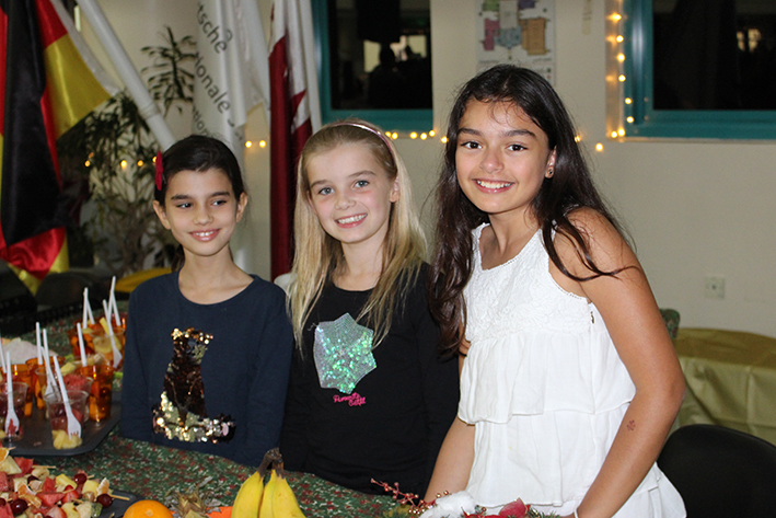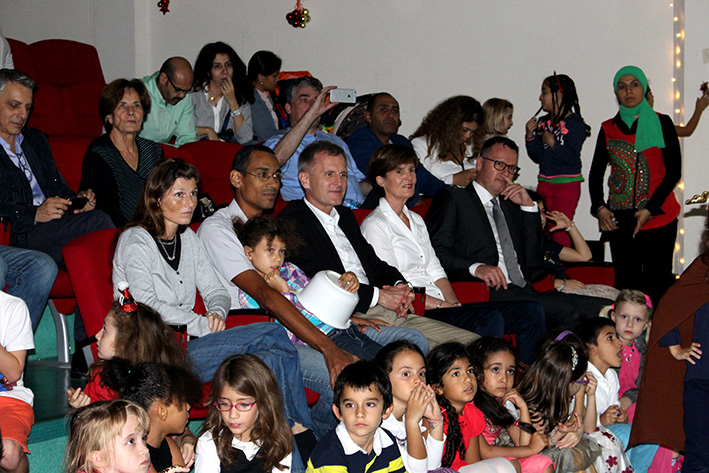 - Aufmerksame Zuhörer bei den Aufführungen im Auditorium: Simone Mora, Personalvorstand der DIS Doha, Ehemann Chinedou Mora, der Deutsche Botschafter in Doha Hans-Udo Muzel mit seiner Gattin Lilian Muzel-Kiviet, sowie unser Schulleiter Dirk Dillschneider (v.l.n.r.)