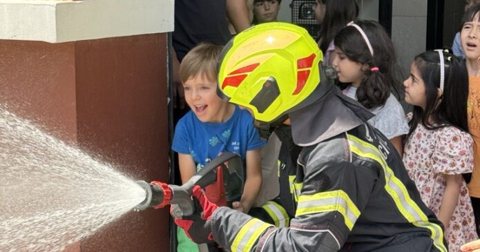 Unsere KG2 Kinder, die bald in die Schule kommen, machten einen gemeinsamen Ausflug zur Feuerwehr. Dies ist in Deutschland Tradition. Die Kinder konnten in der „Feuerwehrschule“ lernen, wie es hinter den Kulissen zugeht. Sie durften auch ein Feuerwehrauto von innen sehen und sogar mit einem echten Feuerwehrschlauch Wasser spritzen. Tabea Thomaschke