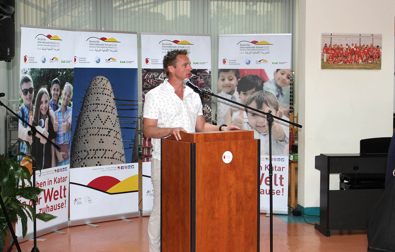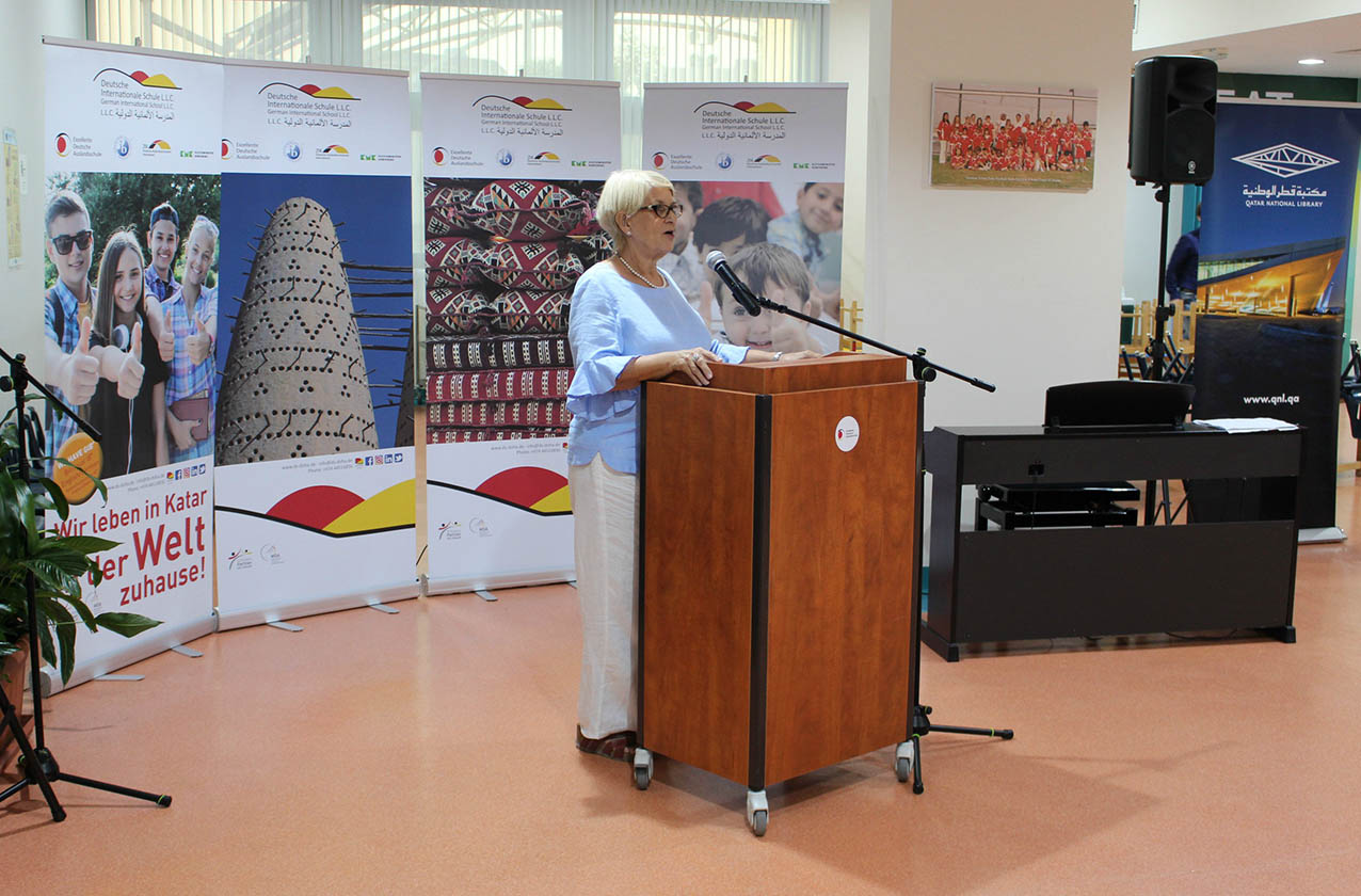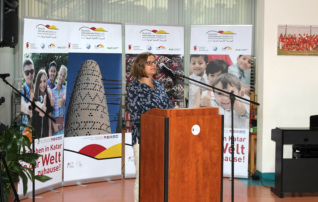 In vielen Gesprächen und an Info-Tischen wurde sich intensiv über das Leben in Katar ausgetauscht. Auch dank der musikalischen Umrahmung der erfolgreichen Teilnehmerinnen des diesjährigen „Jugend musiziert“-Wettbewerbs durch Noemi, Julia und Sarah war es wieder ein wunderbarer und unterhaltsamer Nachmittag in unserer Schule!