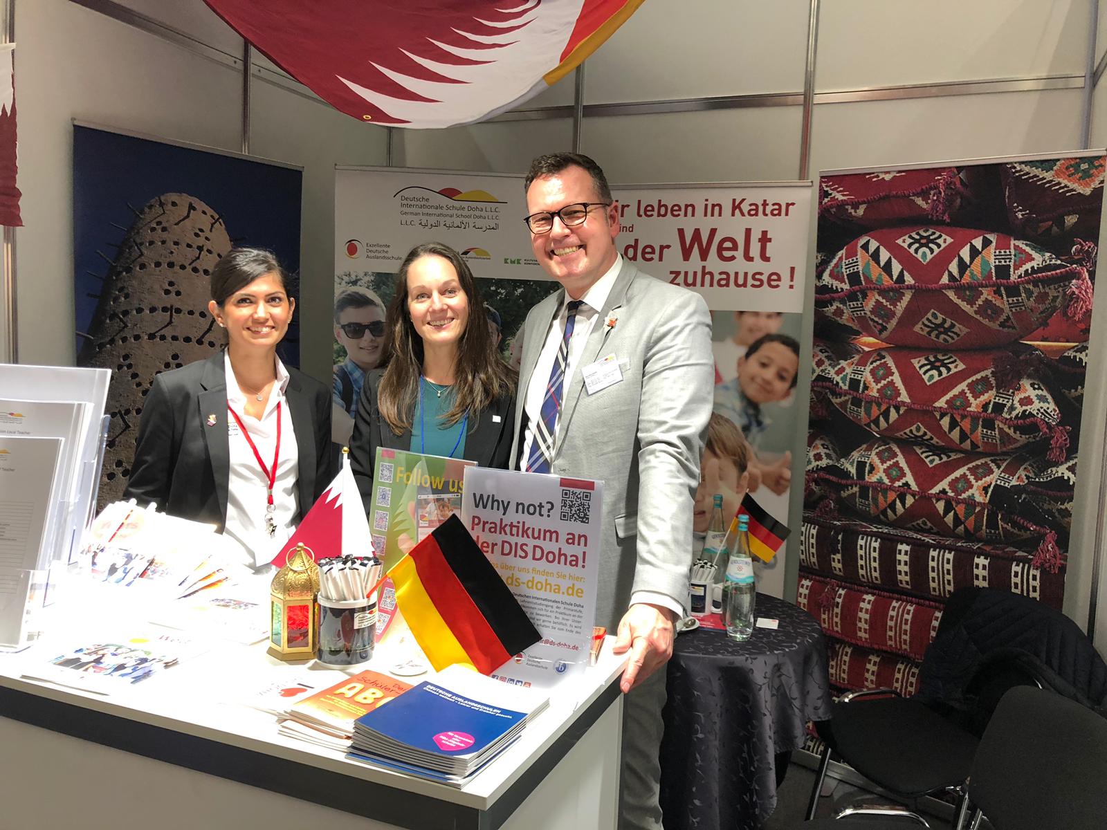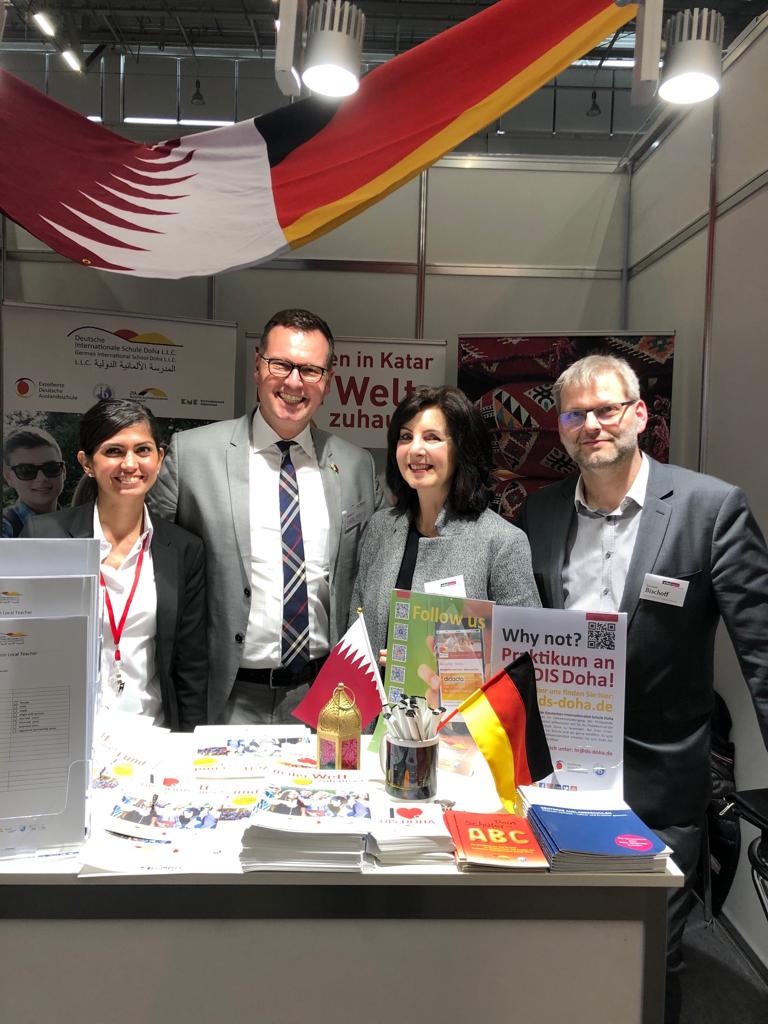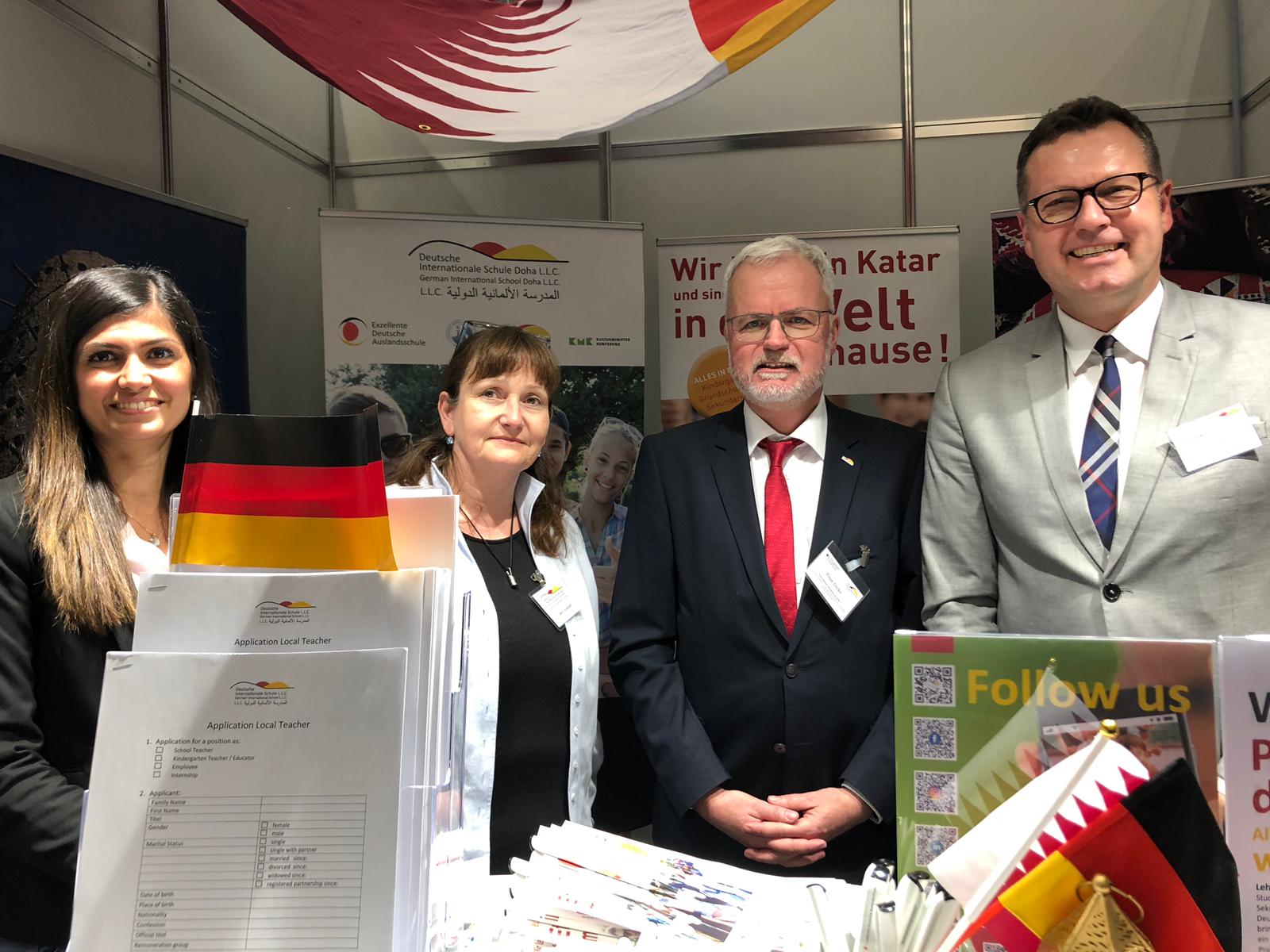 - (f.l.t.r.) Werner Henkelmann ZfA-trade fair appearances and event organization, Bettina Hoffman / Trainees at the Federal Office of Administration and Saarland, Dirk Dillschneider, Schulleiter / German International School Doha
