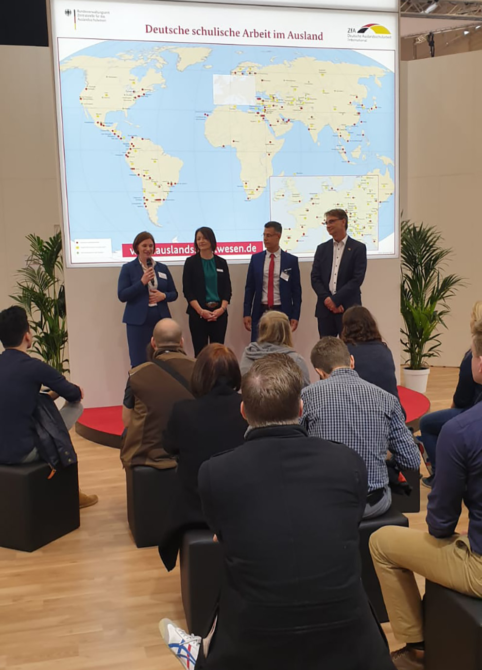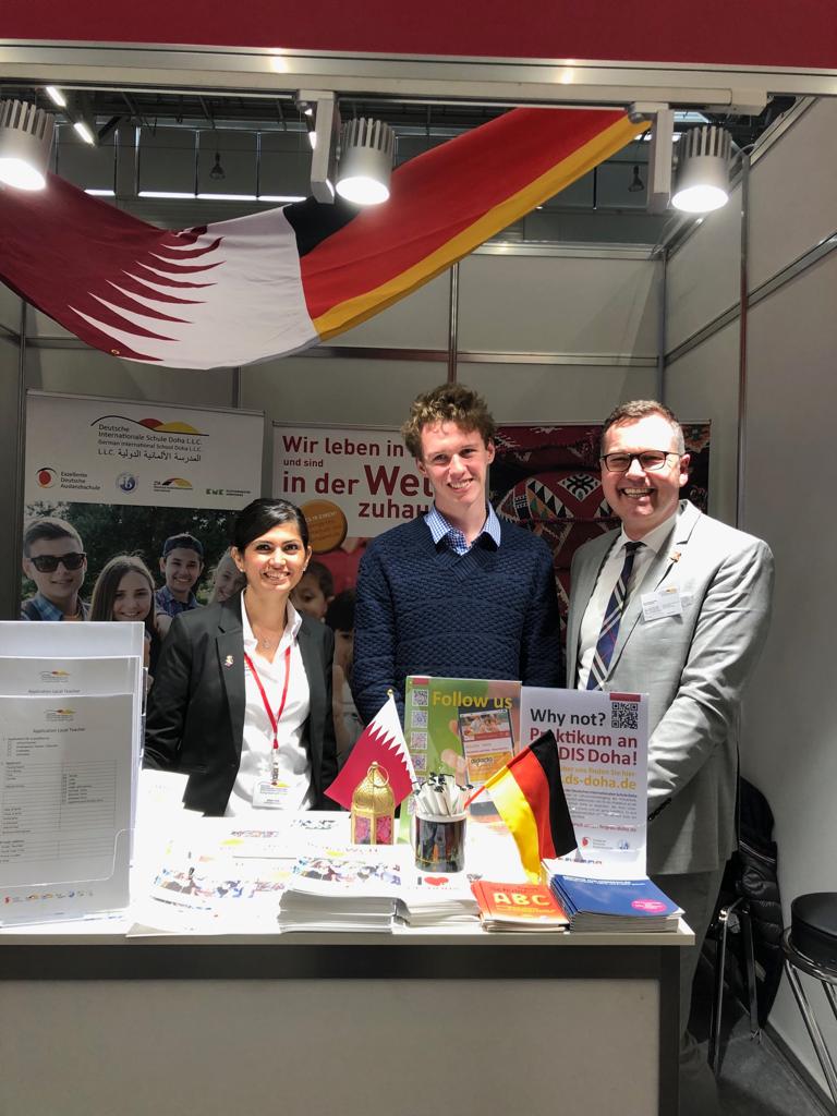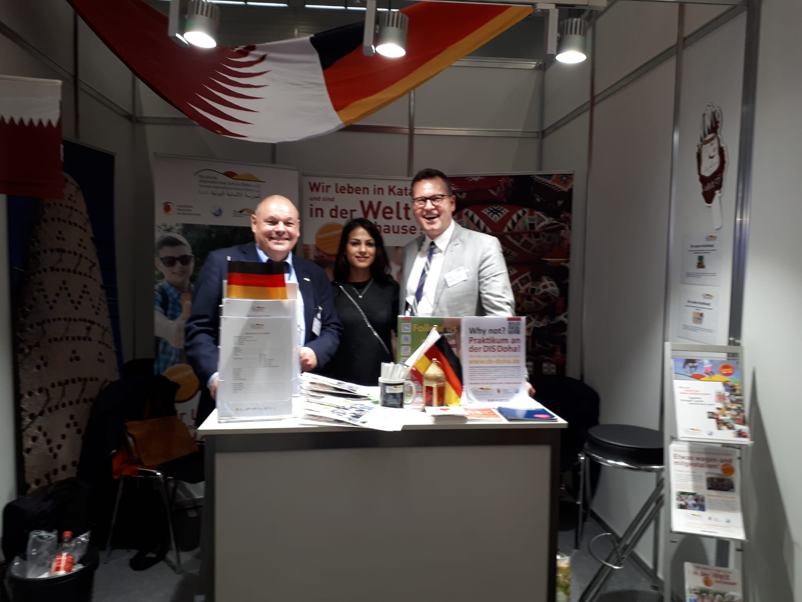 - (f.l.t.r.) Werner Henkelmann ZfA-trade fair appearances and event organization, Bettina Hoffman / Trainees at the Federal Office of Administration and Saarland, Dirk Dillschneider, Schulleiter / German International School Doha