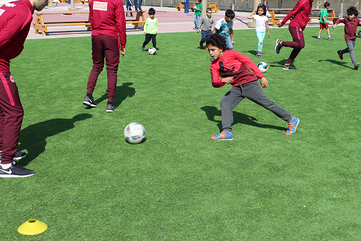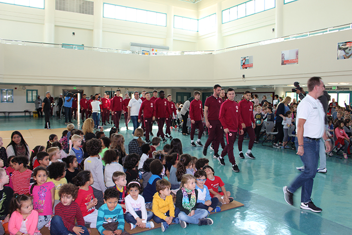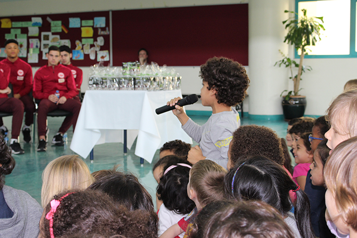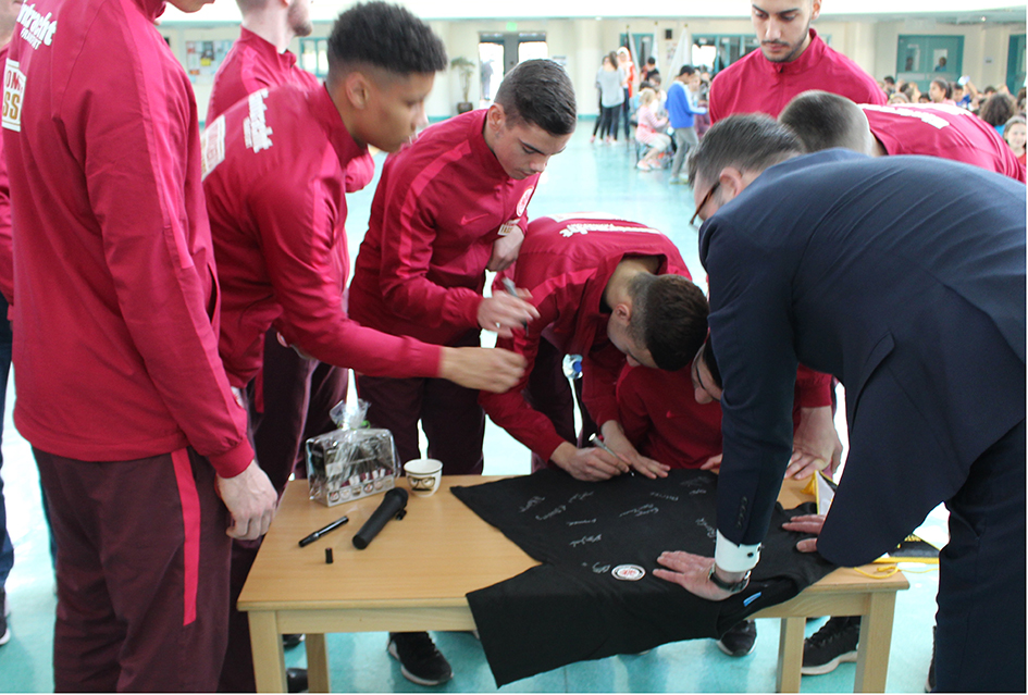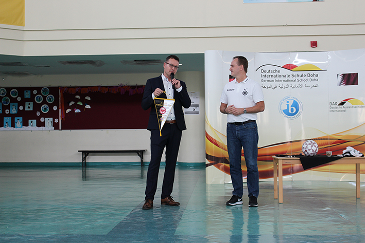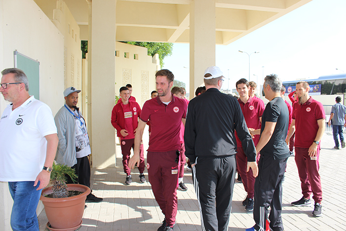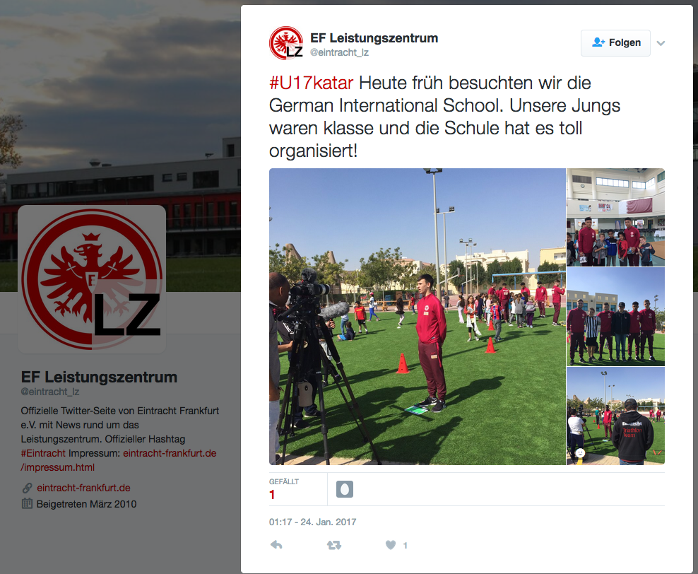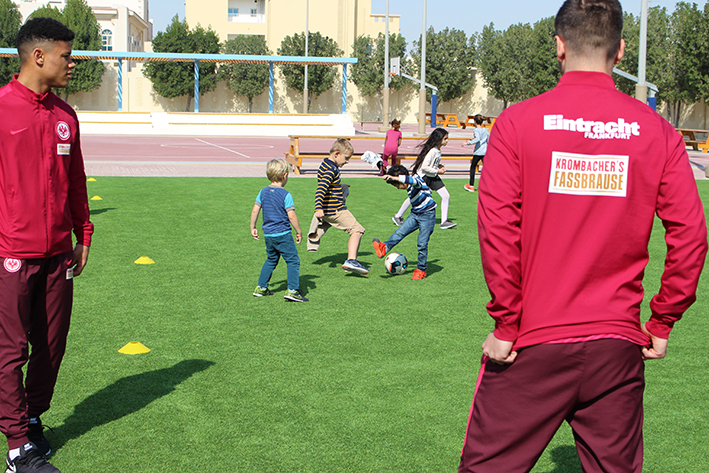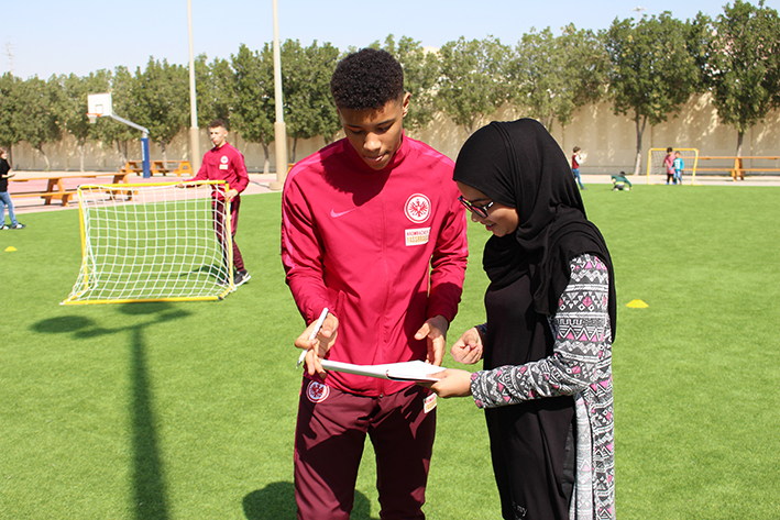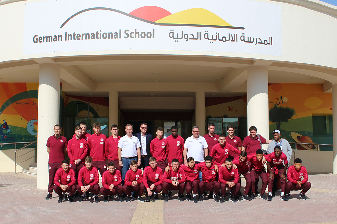 Am 24.1. war die U17 Eintracht Frankfurt an der Schule zu Besuch. 20 Spieler, begleitet durch Trainer und Betreuer, wurden begeistert von der Schulgemeinschaft empfangen: Autogramm- und Fragestunde, gemeinsames Kicken auf dem Sportplatz der Schule, Selfies! Nah bei den Fußballstars von morgen … Wir drücken der Eintracht die Daumen für den Cup am 31. Januar!