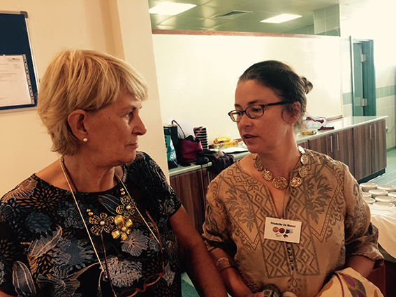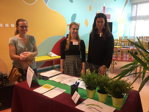 - Janet Brahtz vom German Coffee Morning mit Carmen Kohlfürst (Geschäftsleiterin) und Anne-Sophie Jäger vom Sprachlernzentrum Doha