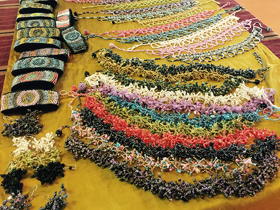 - Handgefertigte Schmuckstücke afghanischer Flüchtlichsfrauen im Iran standen am Gemeinde-Tisch zum Verkauf