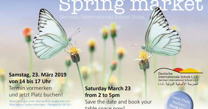 Save the date! For sellers: book your table space now We welcome the Spring! Invitation to our Springmarket at the German International School Doha (First & Second Hand) Saturday, March 23 from 2 to 5pm For bookings please e-mail: disd.parents.rep@gmail.com Please bring your own tables · per space QR 50,– Address: Ibn Seena School Street […]