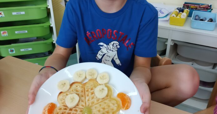 The children of the Lila Gruppe baked and decorated waffle faces, matching the current DaF (German as a foreign language) theme “Body & Senses”. Tabea Thomaschke