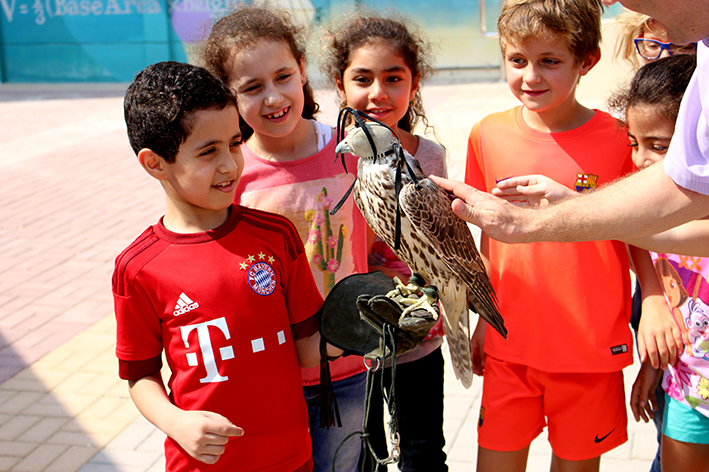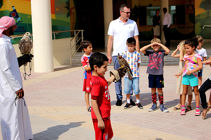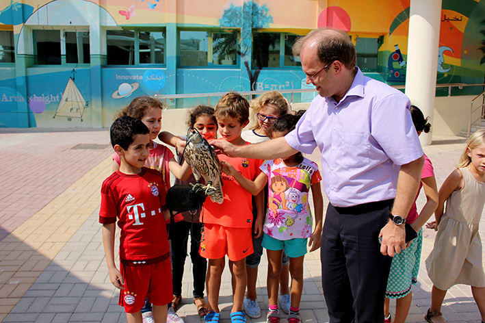 Last Thursday the 27.10.2016, the students of grade 2a could appreciate a spontaneous visit. The father of a pupil presented an old and a young falcon to the interested children. Now everyone is looking forward to the next visit, because then the falcon will fly!