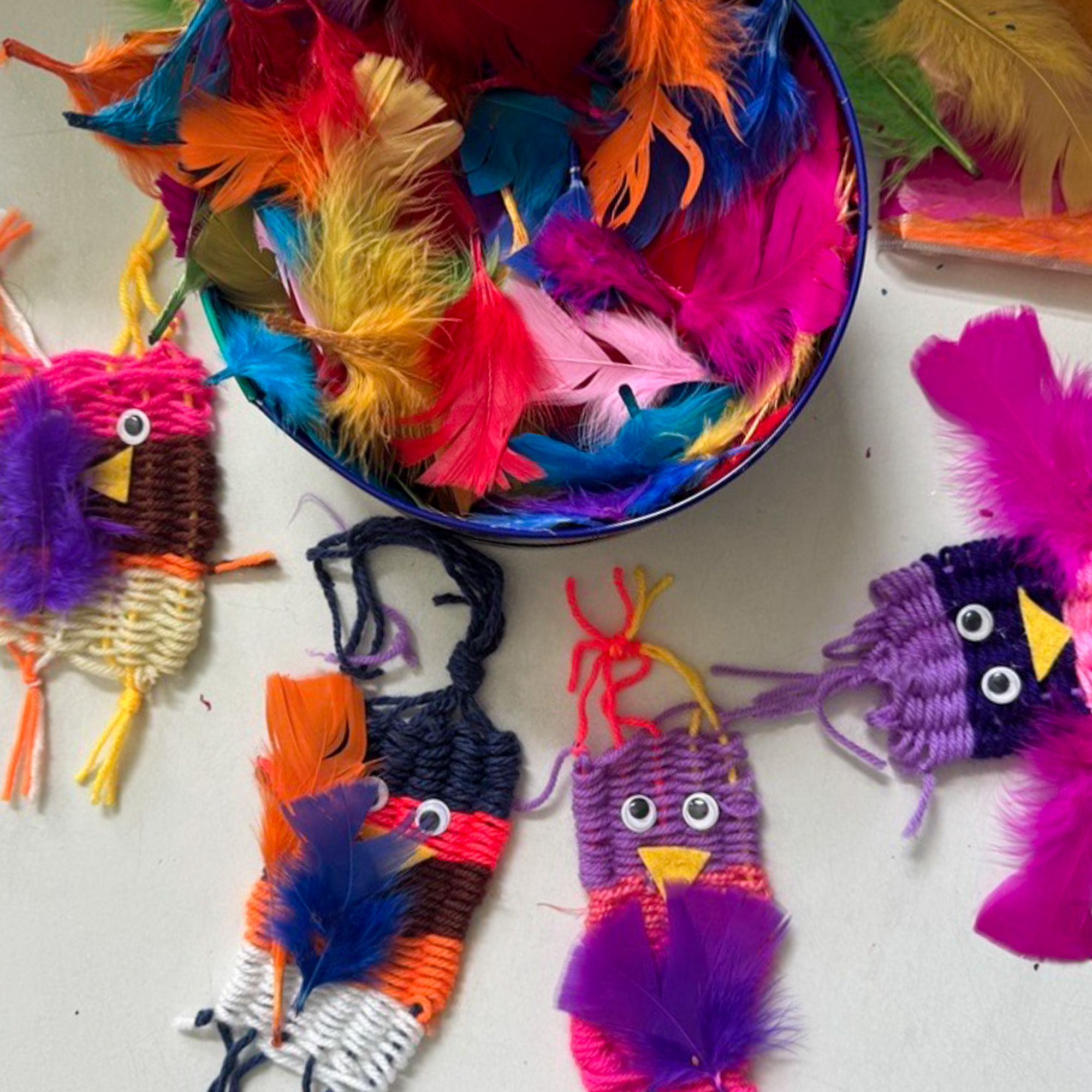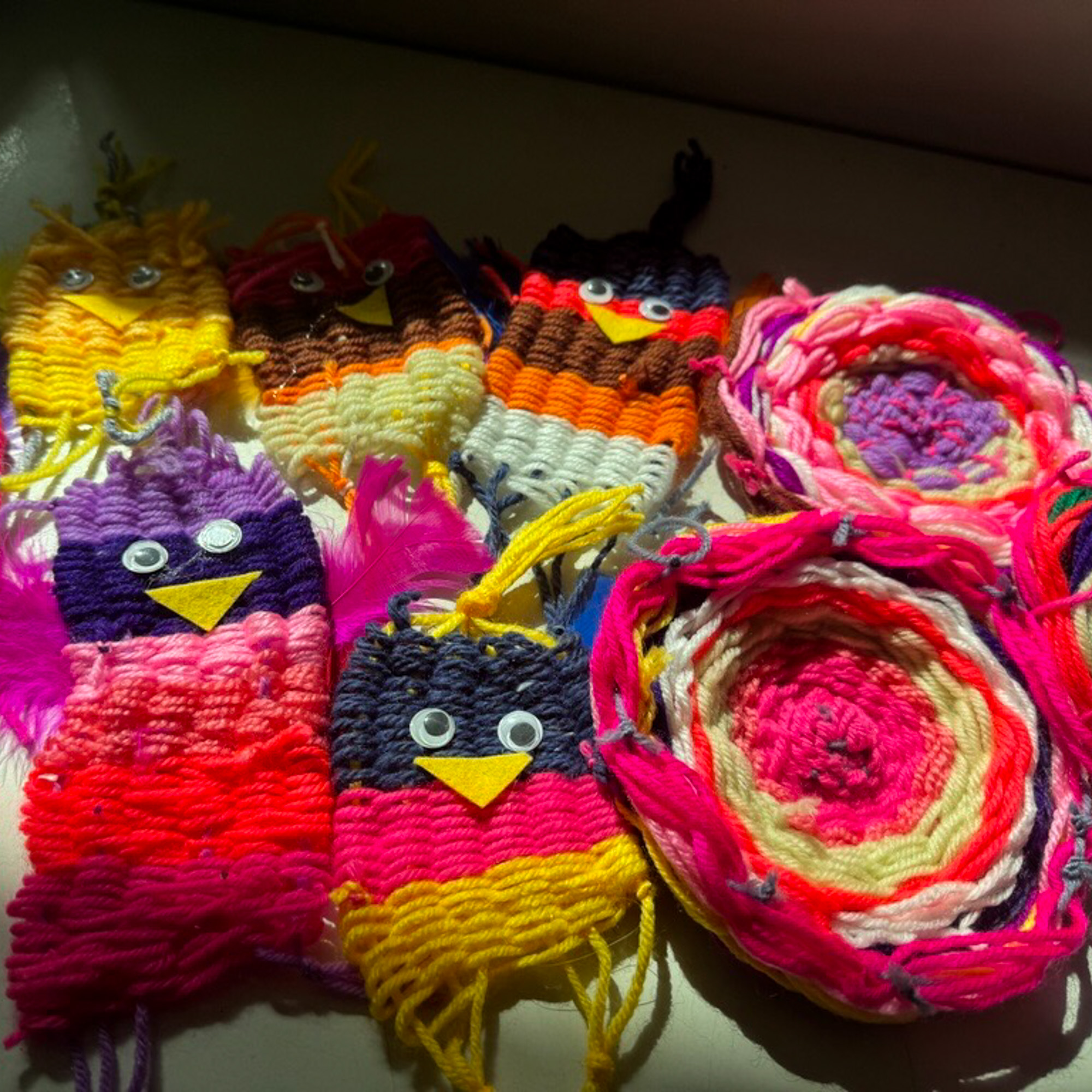 The classes 2 were also busy weaving. They created colorful trivets that not only look beautiful, but also have practical uses in everyday life. The children really enjoyed working with wool and weaving frames.