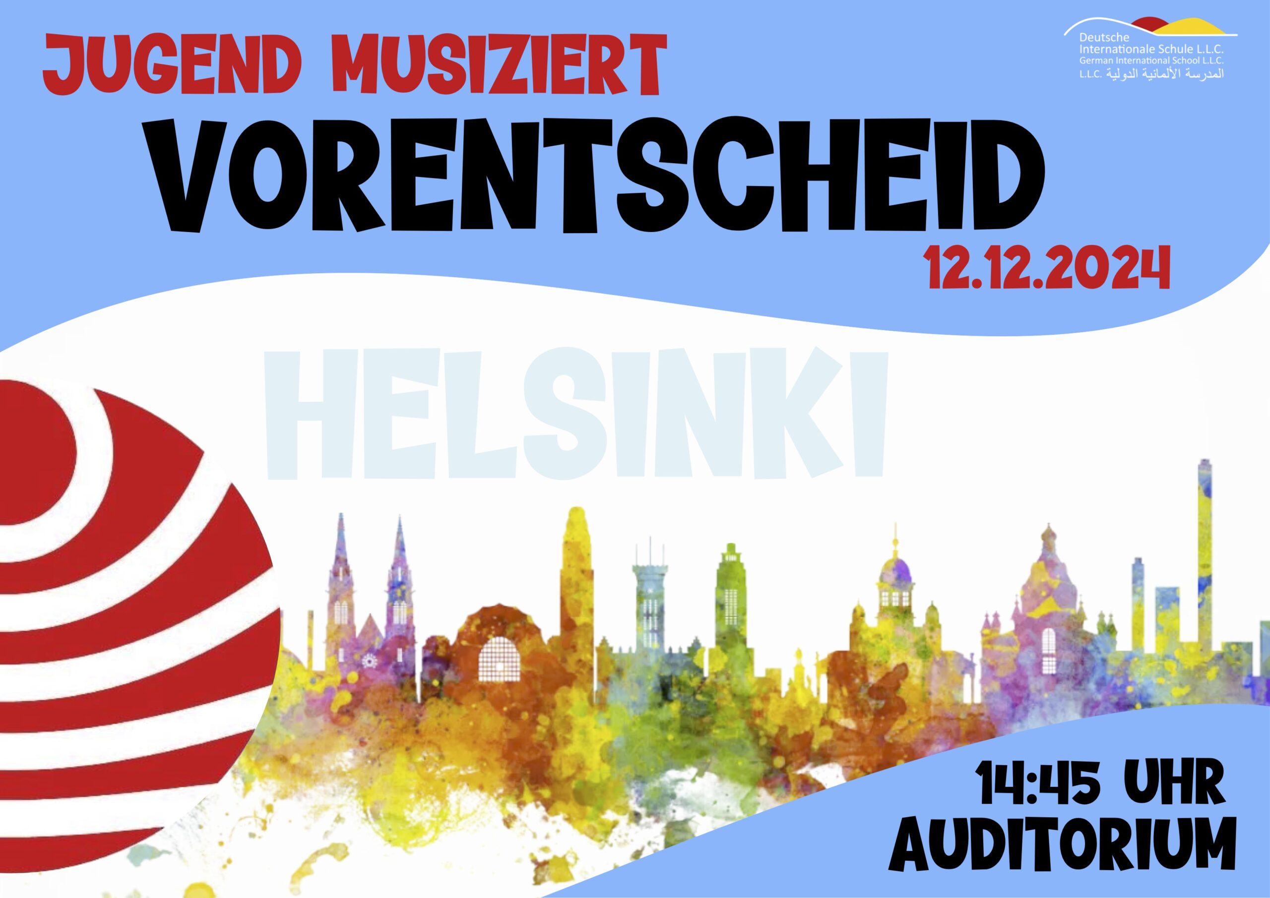 On Thursday, December 12, our school will host the preliminary round of the regional competition “Jugend musiziert”, which will then be held at the German School in Helsinki. We cordially invite you to support our participants in the auditorium at 14:45.