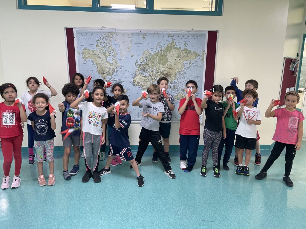 Last week, the students in classes 1a and 1b learned about the letter combination “St”. New words learned with this combination include Stuhl (chair), Stern (star) and Storch (stork). Therefore, the week’s animal of the week in science class was the stork. In art class, we made little rattling storks to go with the animal of the week, and the children took them home to “rattle” busily.