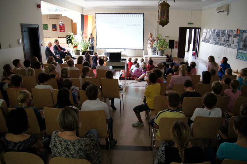 Die erste Unterrrichtsstunde des heutigen sonnigen Montagmorgen wurde an er DS Doha einer Feierstunde, anlässlich des Tages der deutschen Einheit gewidmet.