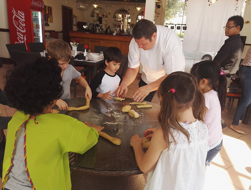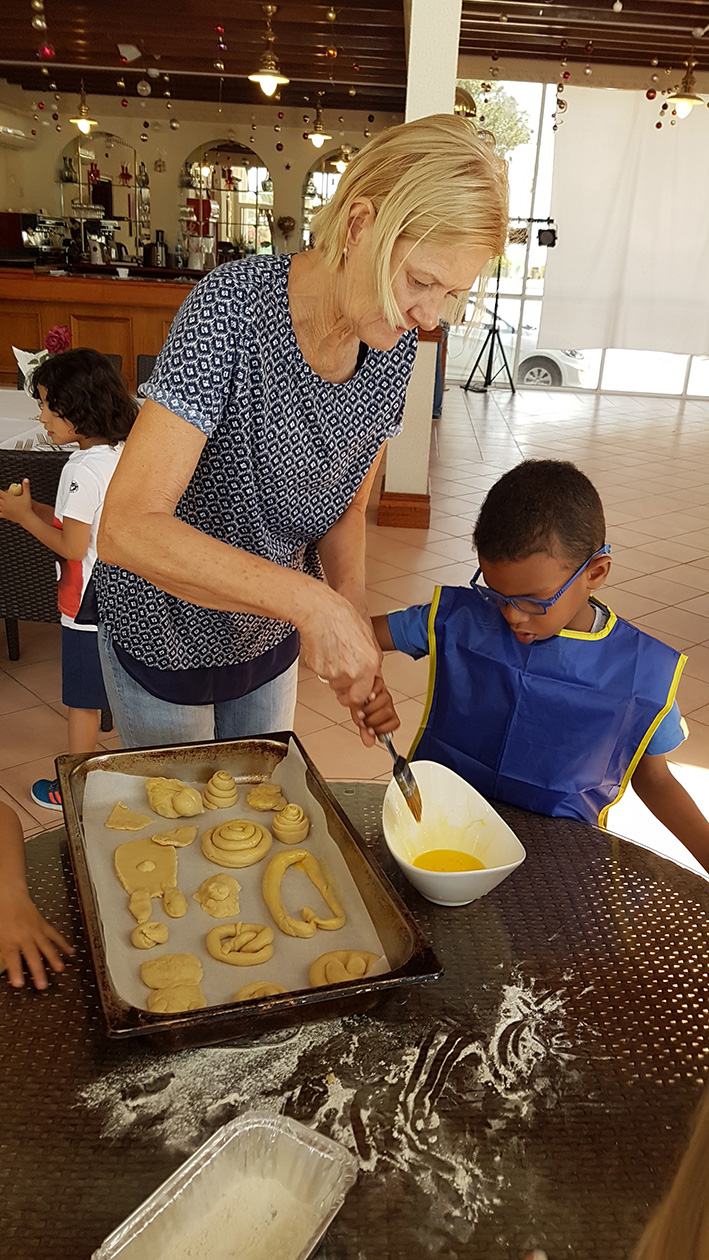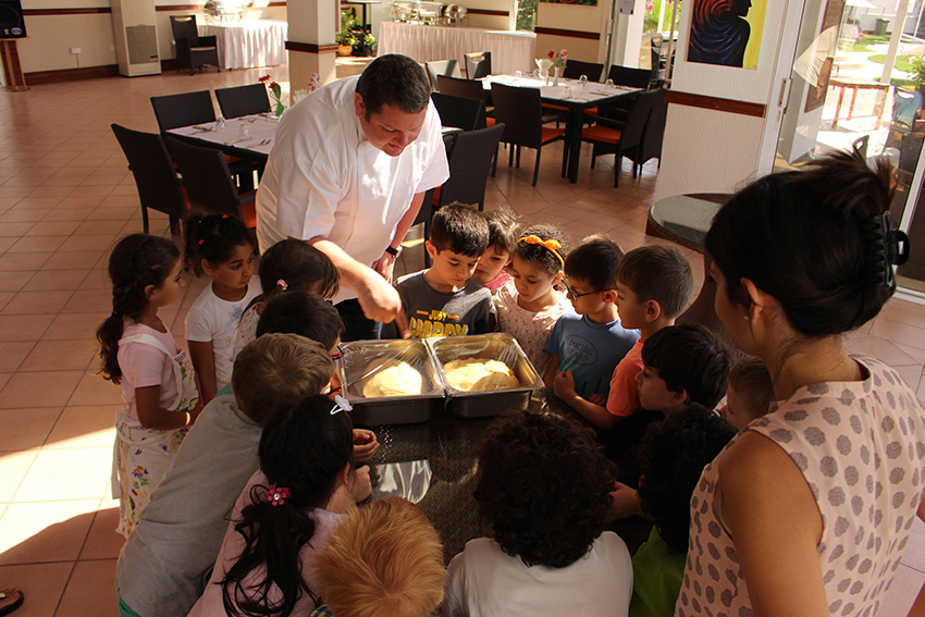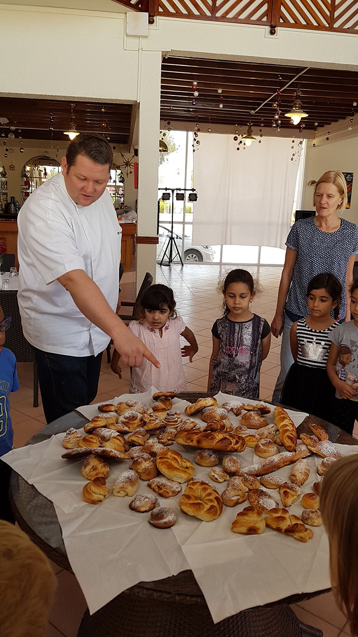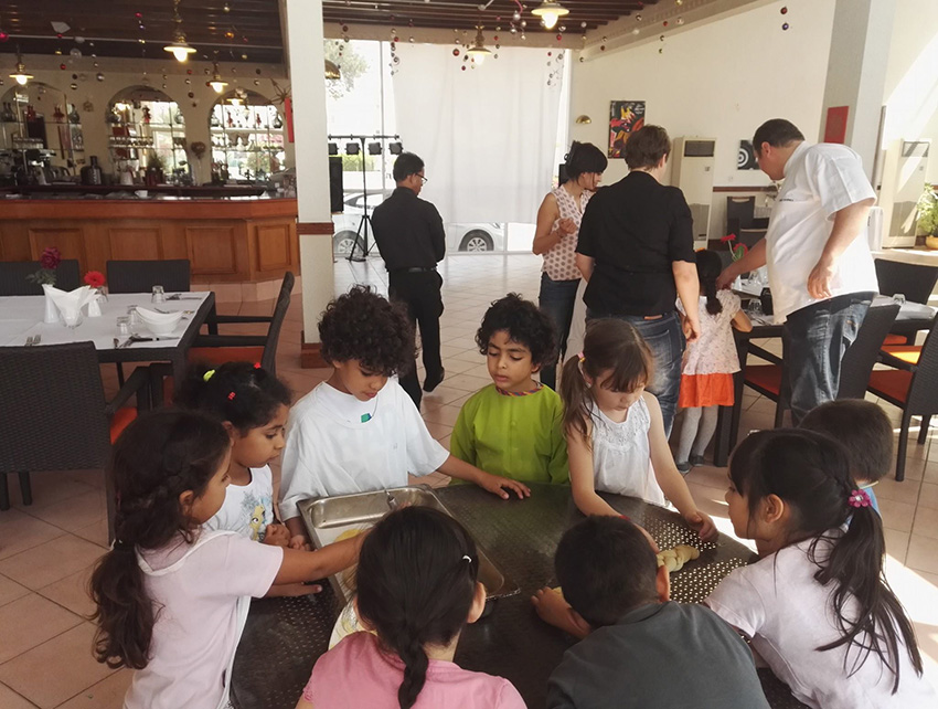 Beim Besuch des Restaurants La Gourmandise in Al Jazi Gardens durften unsere Vorschulkinder gemeinsam mit dem österreichischen Koch Hannes Tinnacher ihre Backkünste ausprobieren.