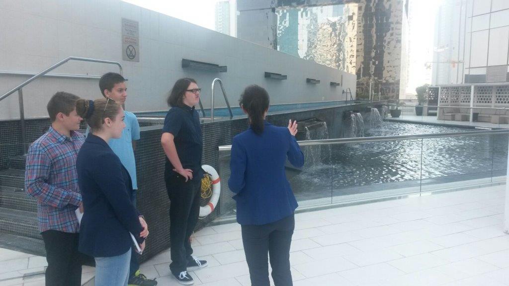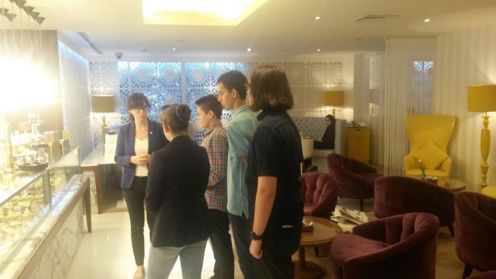 Vor kurzem besuchten Schülerinnen und Schüler der Klassenstufe 10 der Deutschen Internationalen Schule Doha das W-Hotel in Doha, Qatar. Dort wurden sie von zwei deutschen Mitarbeiterinnen höflich empfangen und in die Grundstrukturen eingewiesen, unter anderem das Rangsystem und die Aufteilungen der verschiedenen Bereiche (Engineering, Housekeeping, …) Danach wurden sie von einer der beiden Mitarbeiterinnen durchs Hotel geführt. Zu sehen bekamen sie unter anderem das bekannte Sushi Restaurant des »W« , die extravagante »WOW« (Präsidenten-Suite) und den Dachterrassen-Pool. Die Schüler sammelten erste Eindrücke über das Management und den Ablauf in einem 5 Sterne Hotel. Nach einem informativen Abschiedsgespräch war es auch schon wieder Zeit für die Rückfahrt.