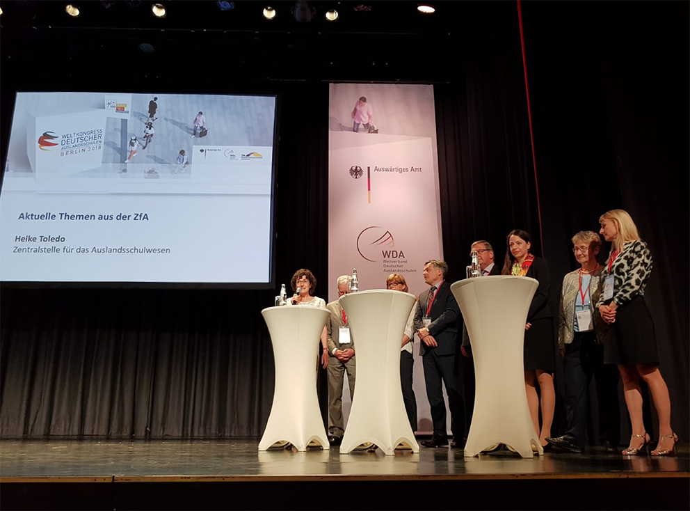 Vom 6. bis 9. Juni 2018 fand der Weltkongress Deutscher Auslandsschulen in Berlin statt. Nach Mexiko-Stadt, Kapstadt, Shanghai und Berlin veranstalteten das Auswärtige Amt, der Weltverband Deutscher Auslandsschulen e.V. (WDA) und die Zentralstelle für das Auslandsschulwesen (ZfA) des Bundesverwaltungsamtes das Spitzentreffen der Deutschen Auslandsschulen zum zweiten Mal in Deutschland.